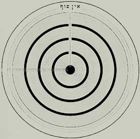 A transformation map of the Tree of Life wherein the ten Sephiroth are grouped into a Cabalistic Scheme of the Four Worlds, where each of the four areas between the main concentric rings possessing an attribute of either fire, water, earth or air. |