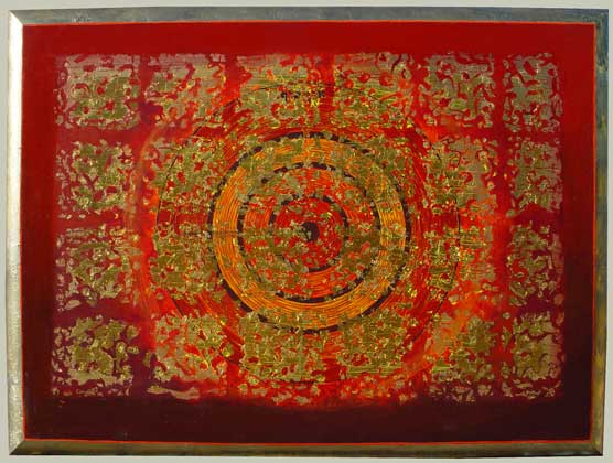 acrylic gold leaf and mixed media on shaped canvas