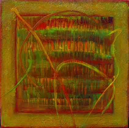 Beth Ames Swartz Where is the summer, the unimaginable zero summer? acrylic and holographic film on canvas 30" x 30" (0.76m x 0.76m) 2004