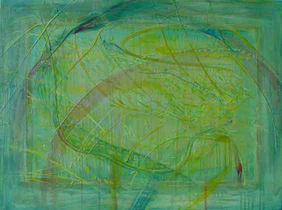 Beth Ames Swartz This is the use of memory: for liberation acrylic and holographic film on canvas 36" x 48" (0.91m x 1.22m) 2004