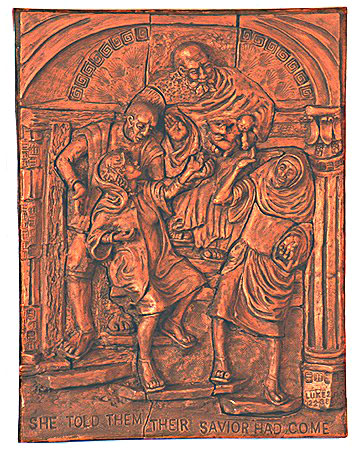 She Told Them Their Savior Had Come 27" X 36" X 4" ( Cast Stone or Resin)